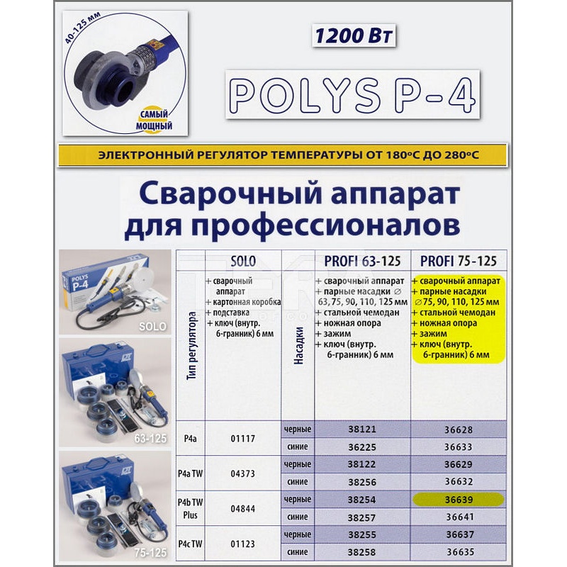 - сварочный аппарат Polys P-4b TW+ 1200W;