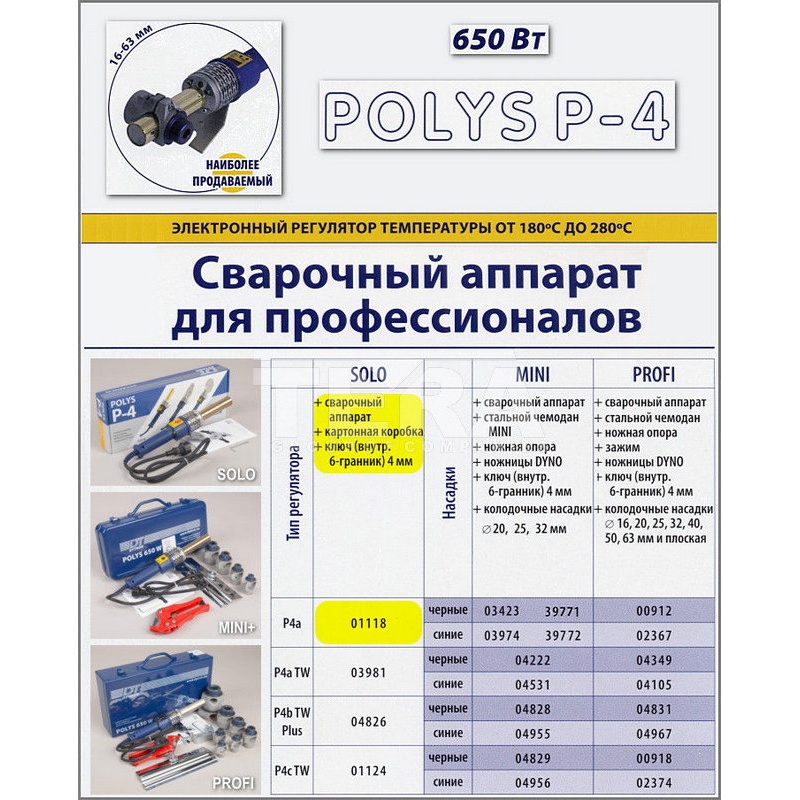 - сварочный аппарат Polys P-4a TW 650W;