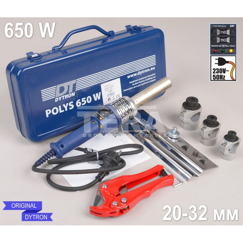 Зварювальне устаткування компанії Dytron (Чехія) славиться надійністю і ефективністю при професійній експлуатації по прямому призначенню. Для розтрубного зварювання поліпропіленових труб, виробником випускаються паяльники: