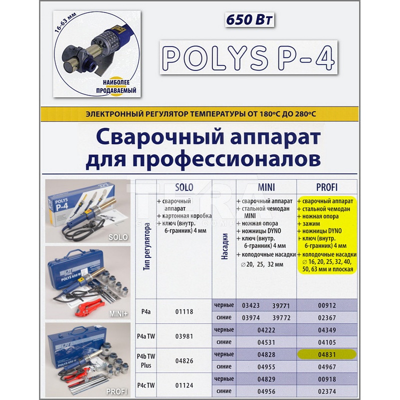 - зварювальний апарат Polys P-4b TW+ 650W;